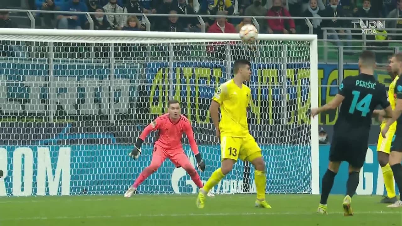 Tiro atajado Por arriba en el centro del arco. Ivan Perisic (Internazionale) zurdazo desde fuera del área. Asistencia de Denzel Dumfries.