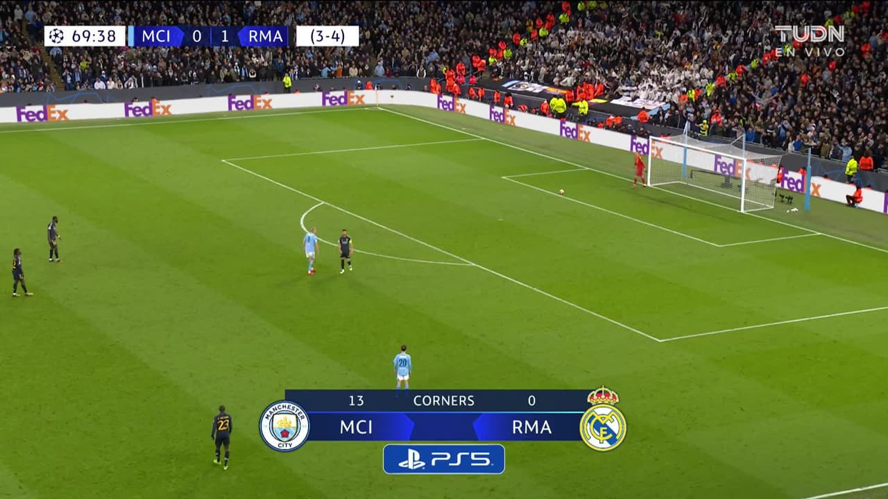 Tiro atajado por abajo a la izquierda. Jack Grealish (Manchester City) Disparo con la derecha desde el lado izquierdo dentro del área. Asistencia de Rodri pase largo.