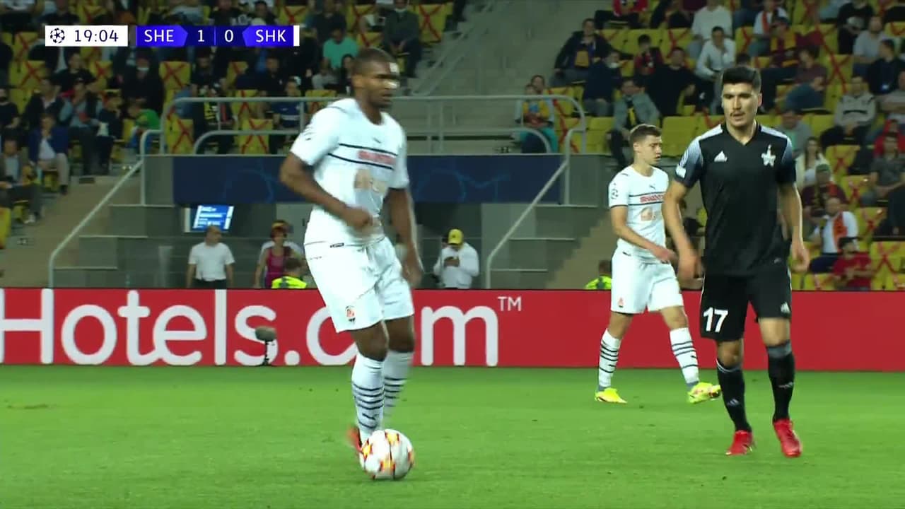 Tiro atajado por abajo a la izquierda. Jasurbek Yakhshiboev (Sheriff Tiraspol) zurdazo desde fuera del área. Asistencia de Sébastien Thill.