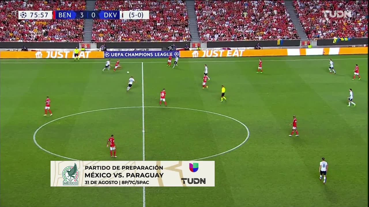 Tiro atajado. João Mário (Benfica) Disparo con la derecha desde el lado derecho dentro del área.