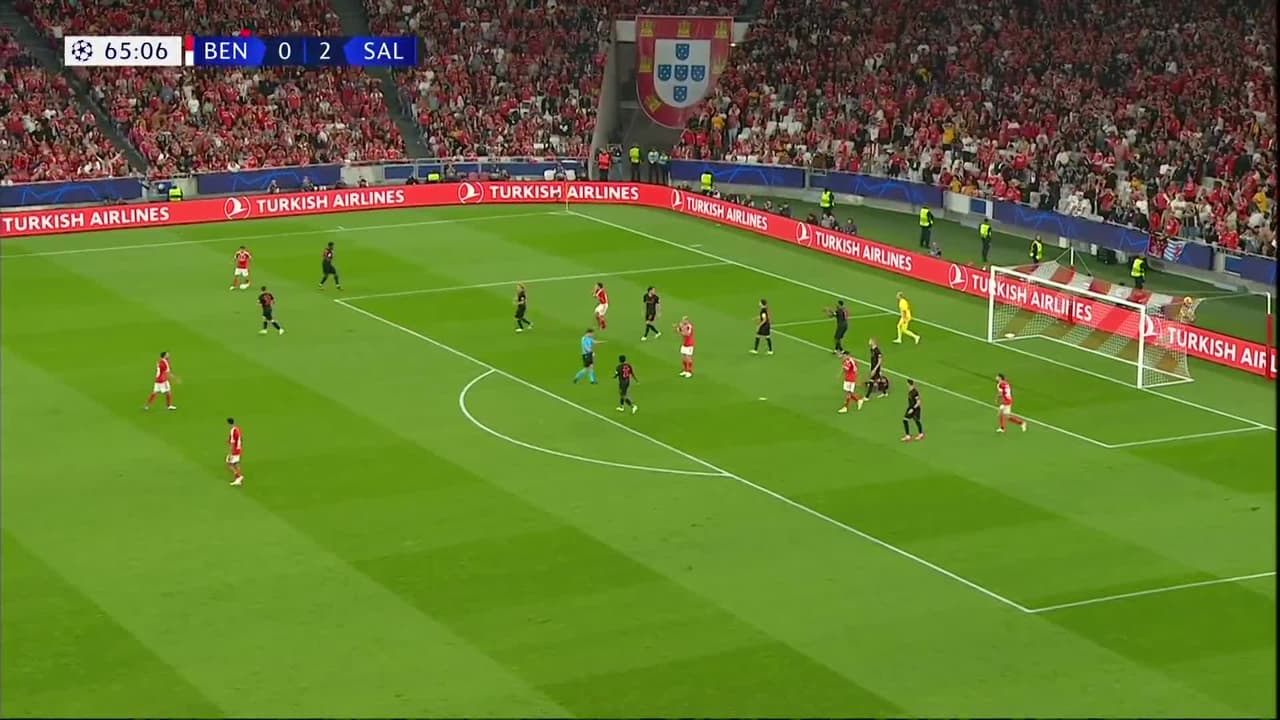 Tiro atajado raso al centro del arco. João Neves (Benfica) disparo de cabeza desde el centro del área. Asistencia de Ángel Di María con un centro al área.