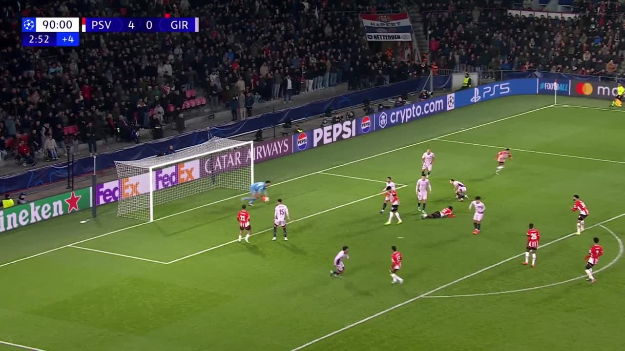 Tiro atajado raso al centro del arco. Johan Bakayoko (PSV Eindhoven) zurdazo desde el lado derecho dentro del área.