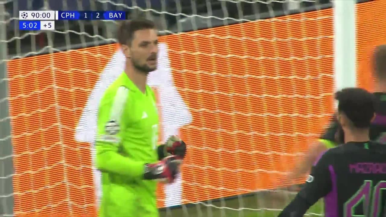 Tiro atajado junto al lado derecho de la portería. Jordan Larsson (FC København) disparo de cabeza desde el centro del área. Asistencia de Peter Ankersen con un centro al área.