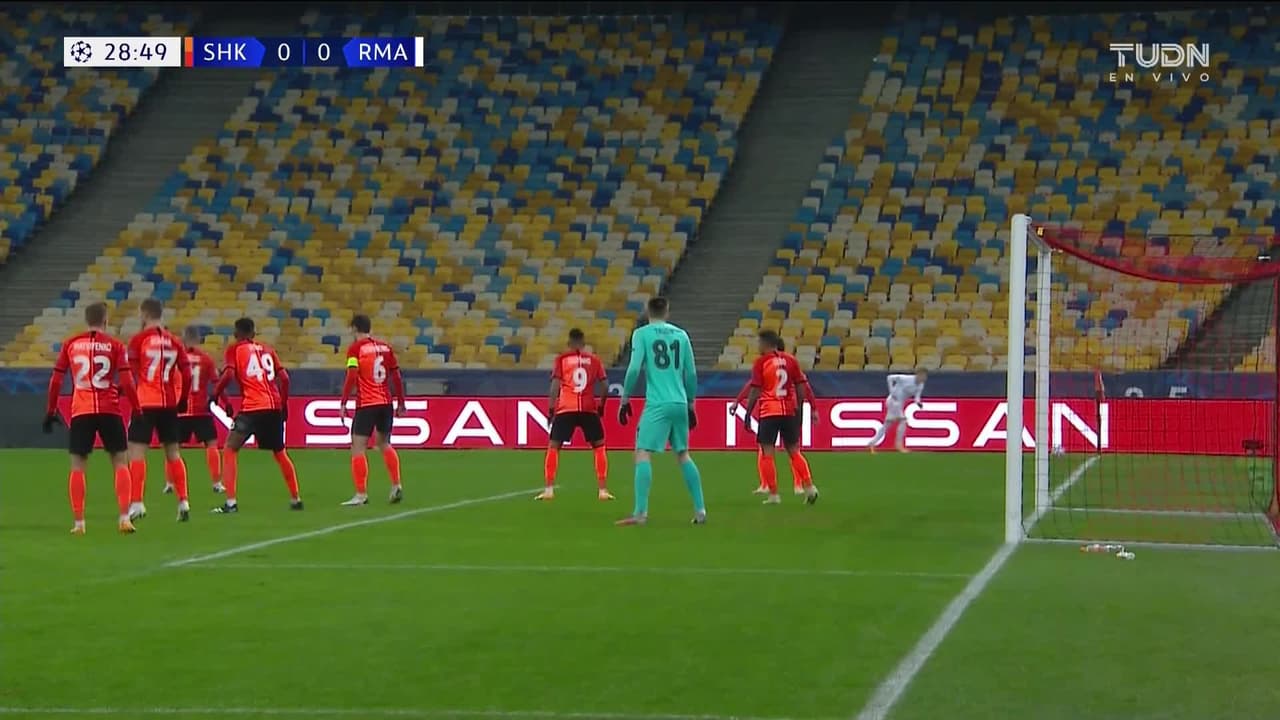Tiro atajado por abajo a la izquierda. Nacho (Real Madrid) disparo de cabeza desde el centro del área. Asistencia de Martin Ødegaard con un centro al área.
