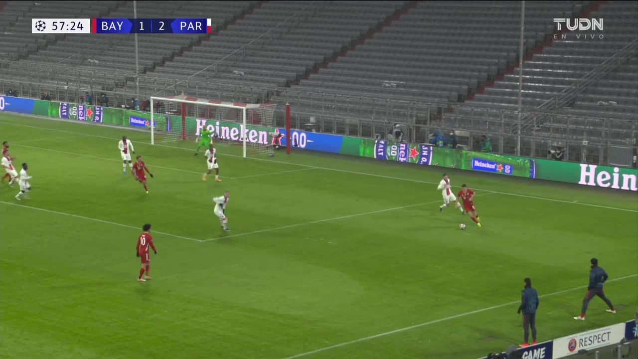 Tiro atajado al ángulo superior derecho. Joshua Kimmich (FC Bayern München) Disparo con la derecha desde fuera del área. Asistencia de David Alaba.