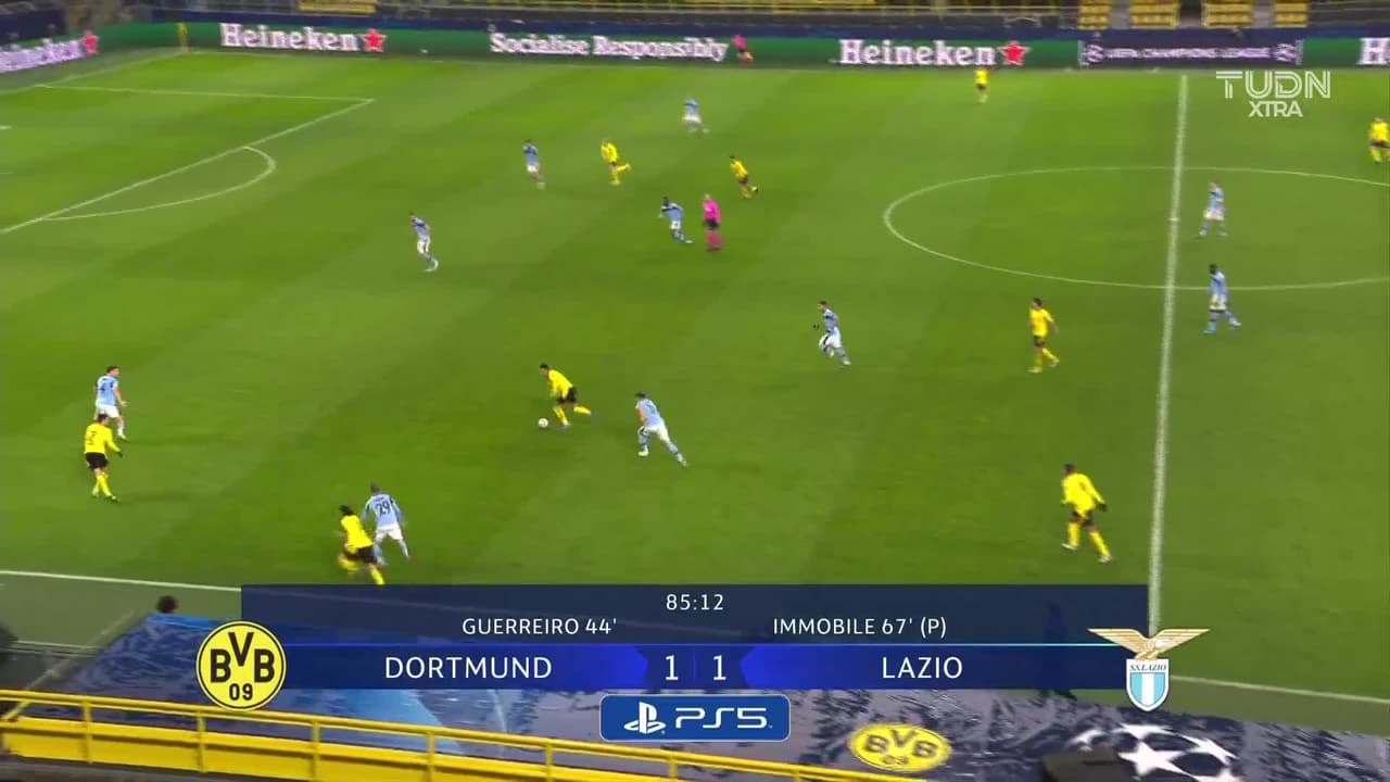 Tiro atajado raso al centro del arco. Jude Bellingham (Borussia Dortmund) Disparo con la derecha desde fuera del área. Asistencia de Jadon Sancho.