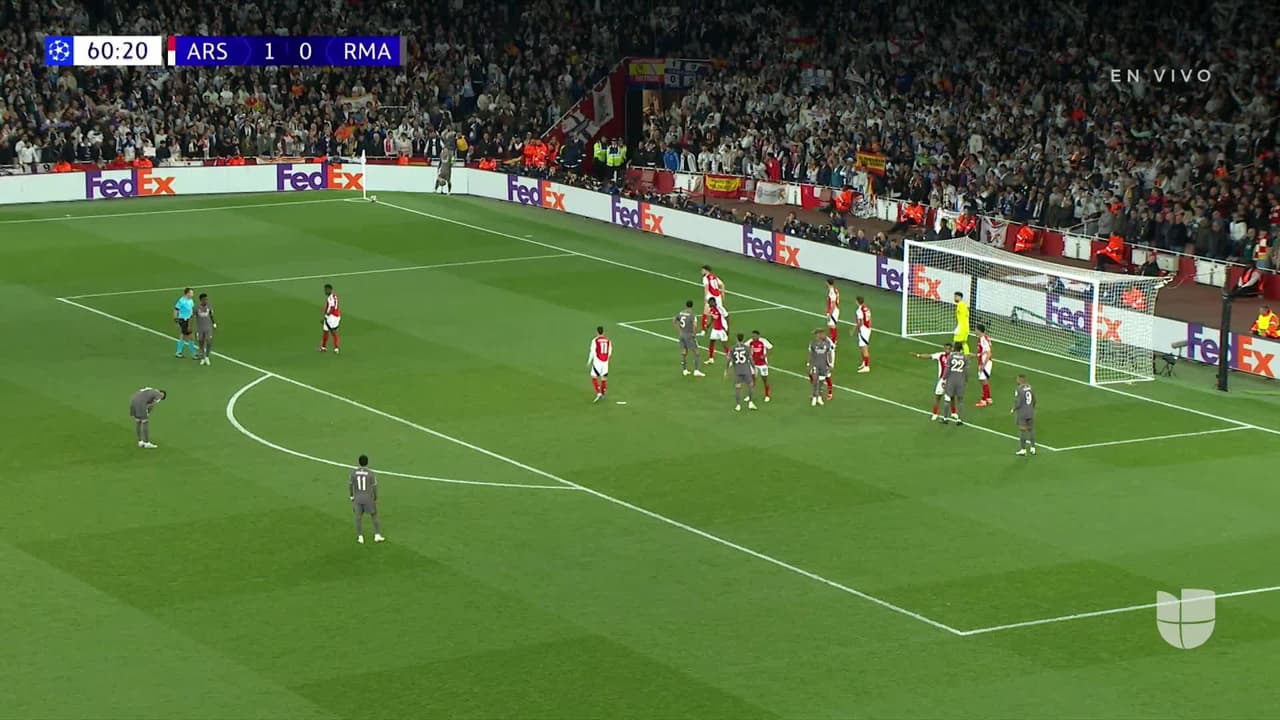 Tiro atajado raso al centro del arco. Jude Bellingham (Real Madrid) zurdazo desde el centro del área. Asistencia de Luka Modric con un centro al área.