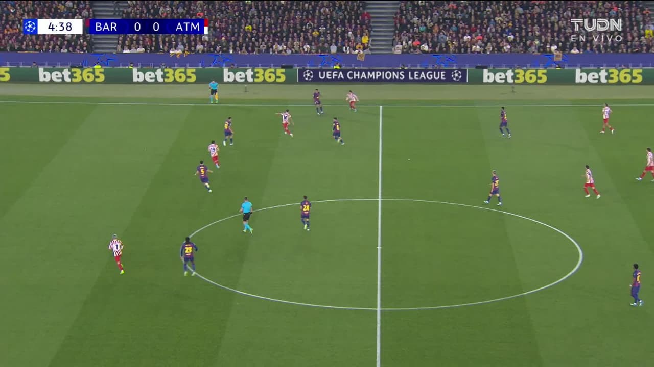 Tiro atajado junto al lado derecho de la portería. Julián Alvarez (Atlético de Madrid) zurdazo desde el centro del área.