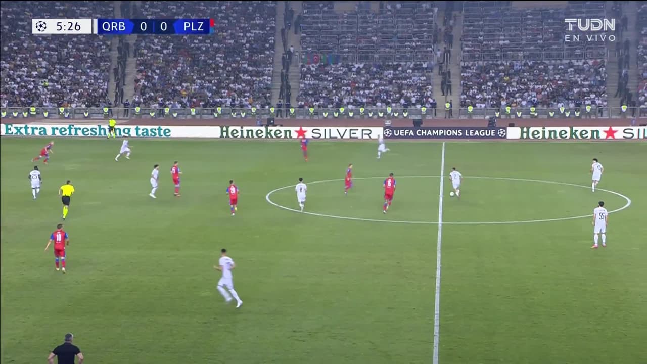 Tiro atajado Por arriba en el centro del arco. Kady (FK Qarabag) Disparo con la derecha desde el centro del área.