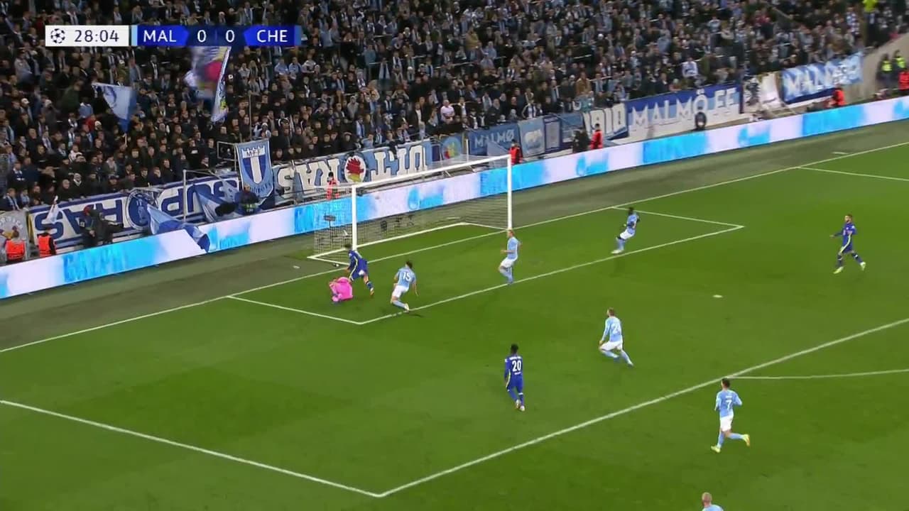 Tiro atajado por abajo a la izquierda. Kai Havertz (Chelsea) zurdazo desde el lado izquierdo dentro del área. Asistencia de Ruben Loftus-Cheek después de un pase en profundidad.