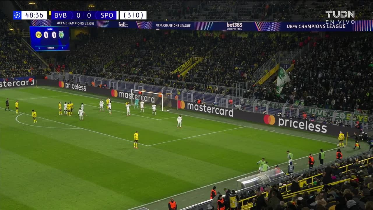 Tiro atajado junto al lado derecho de la portería. Karim Adeyemi (Borussia Dortmund) zurdazo desde fuera del área. Asistencia de Nico Schlotterbeck.