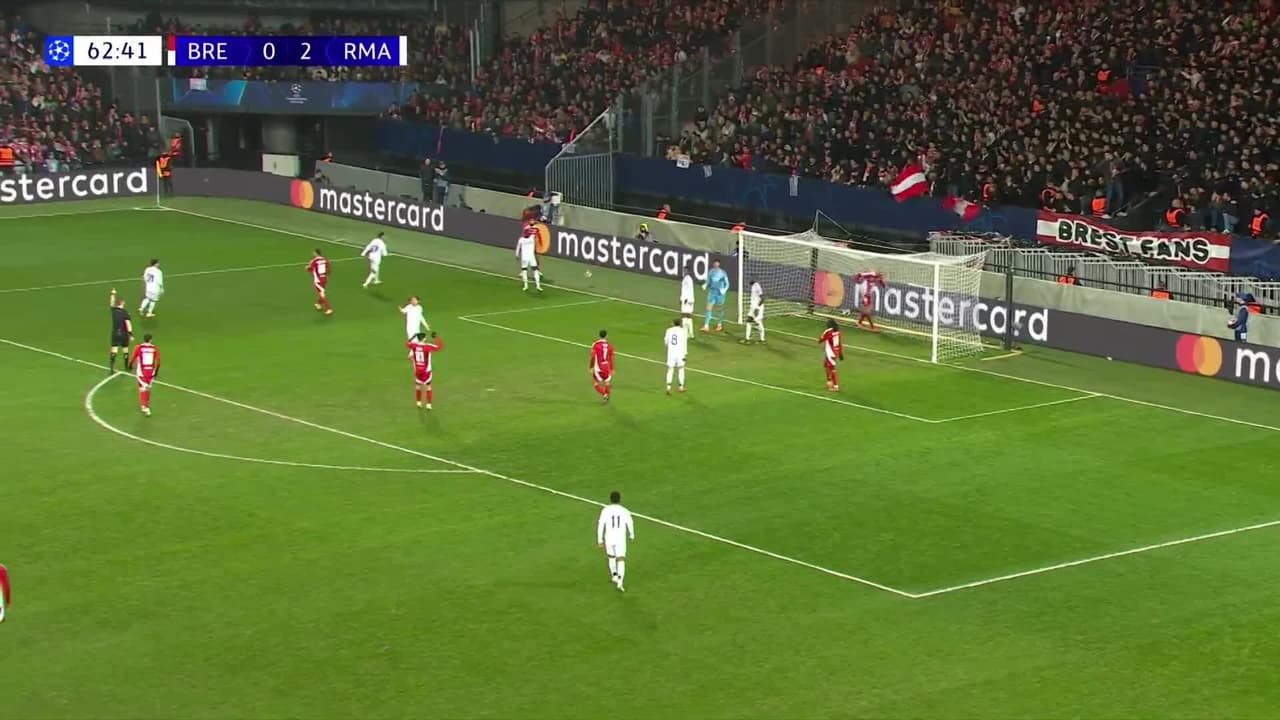 Tiro atajado al ángulo superior derecho. Kenny Lala (Brest) Disparo con la derecha desde el centro del área. Asistencia de Ludovic Ajorque.