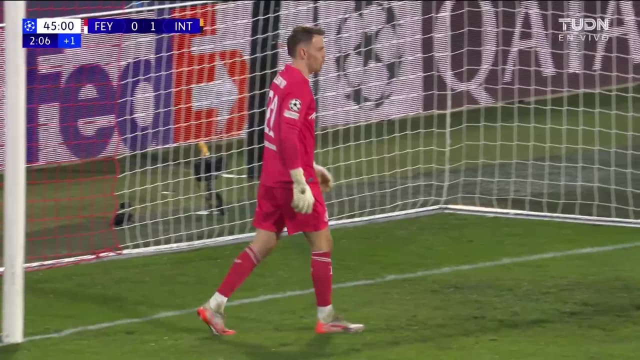 Tiro atajado Por arriba en el centro del arco. Kristjan Asllani (Internazionale) Disparo con la derecha desde fuera del área.