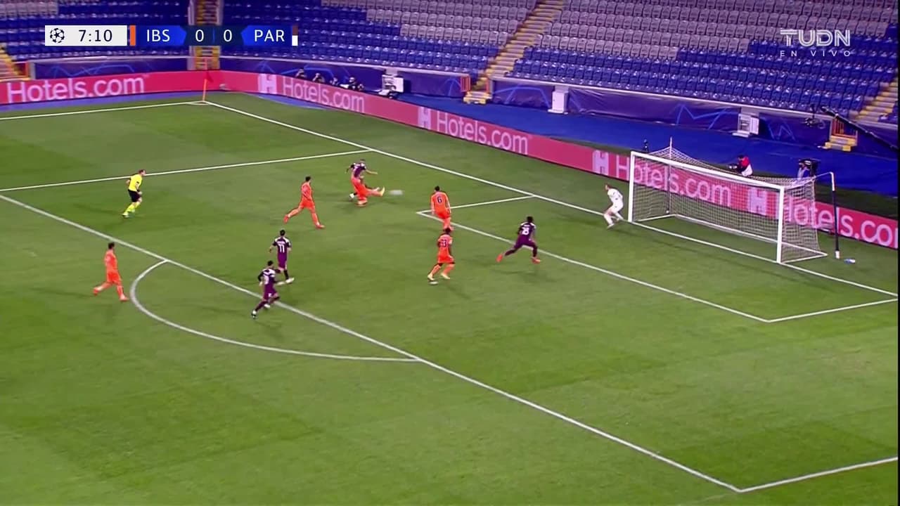 Tiro atajado por abajo a la izquierda. Kylian Mbappé (Paris Saint-Germain) zurdazo sin ángulo desde la izquierda. Asistencia de Layvin Kurzawa.