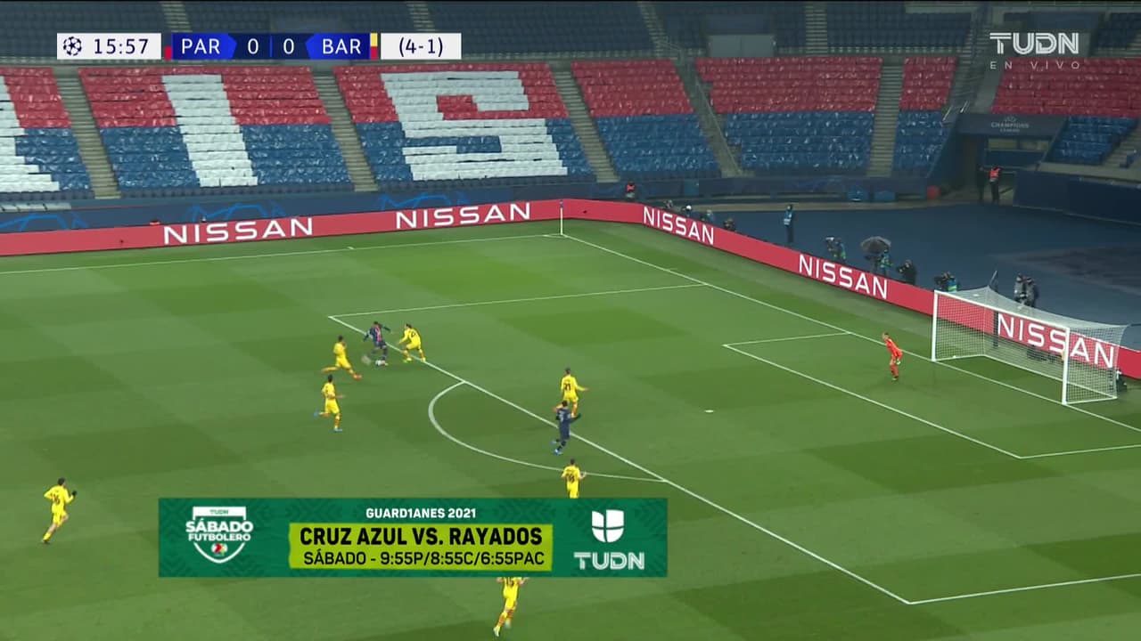 Tiro atajado raso al centro del arco. Kylian Mbappé (Paris Saint-Germain) Disparo con la derecha desde fuera del área. Asistencia de Marco Verratti.