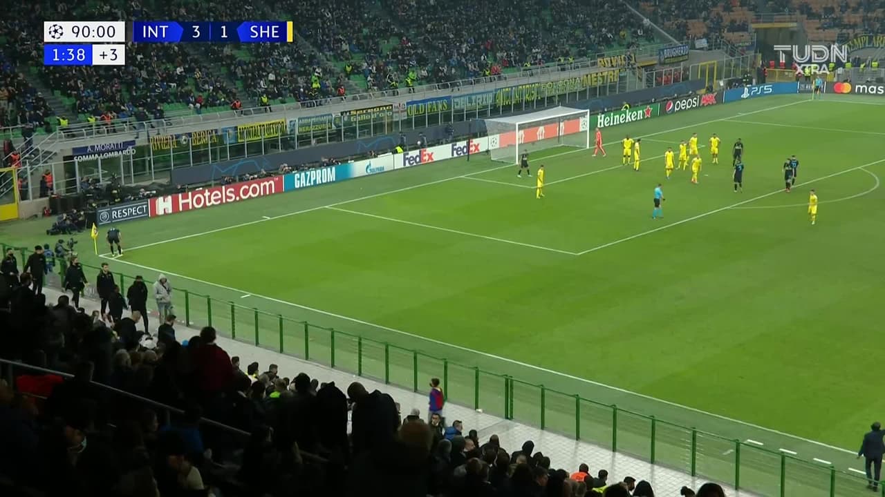 Tiro atajado Por arriba en el centro del arco. Lautaro Martínez (Internazionale) zurdazo desde el centro del área. Asistencia de Aleksandar Kolarov con un centro al área.