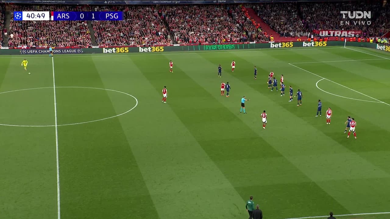 Tiro atajado raso al centro del arco. Leandro Trossard (Arsenal) Disparo con la derecha desde el centro del área. Asistencia de Mikel Merino.