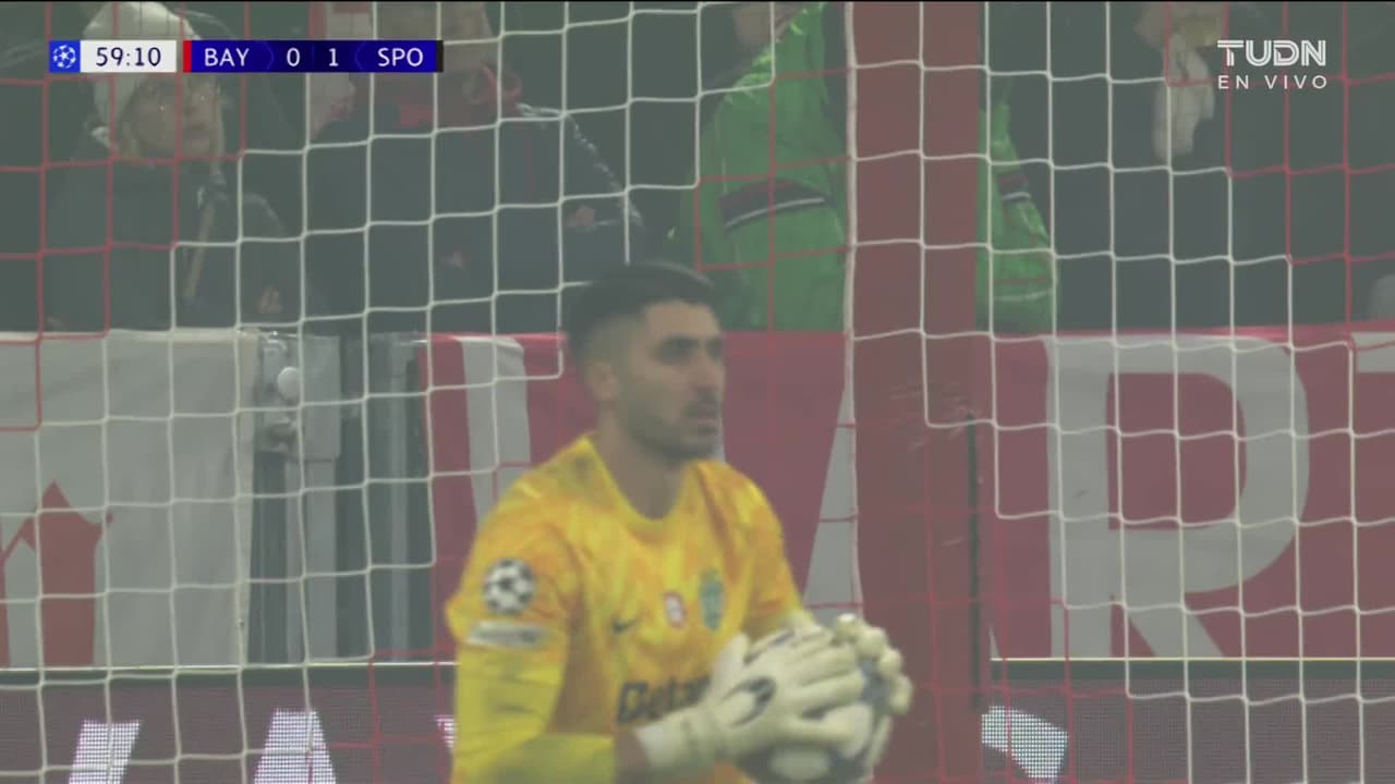 Tiro atajado raso al centro del arco. Lennart Karl (FC Bayern München) zurdazo desde fuera del área. Asistencia de Joshua Kimmich.