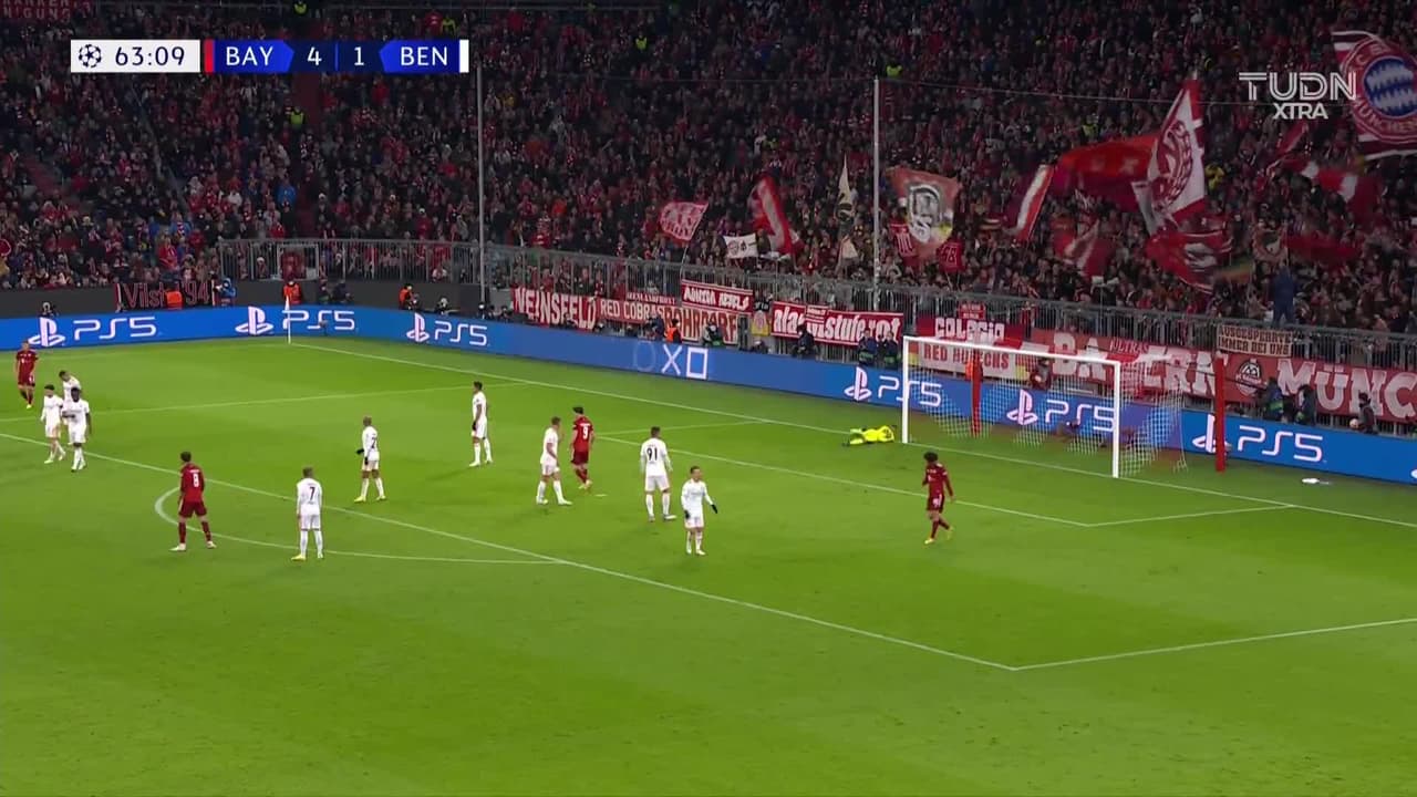 Tiro atajado raso al centro del arco. Leroy Sané (FC Bayern München) zurdazo desde el centro del área. Asistencia de Serge Gnabry después de un pase en profundidad.