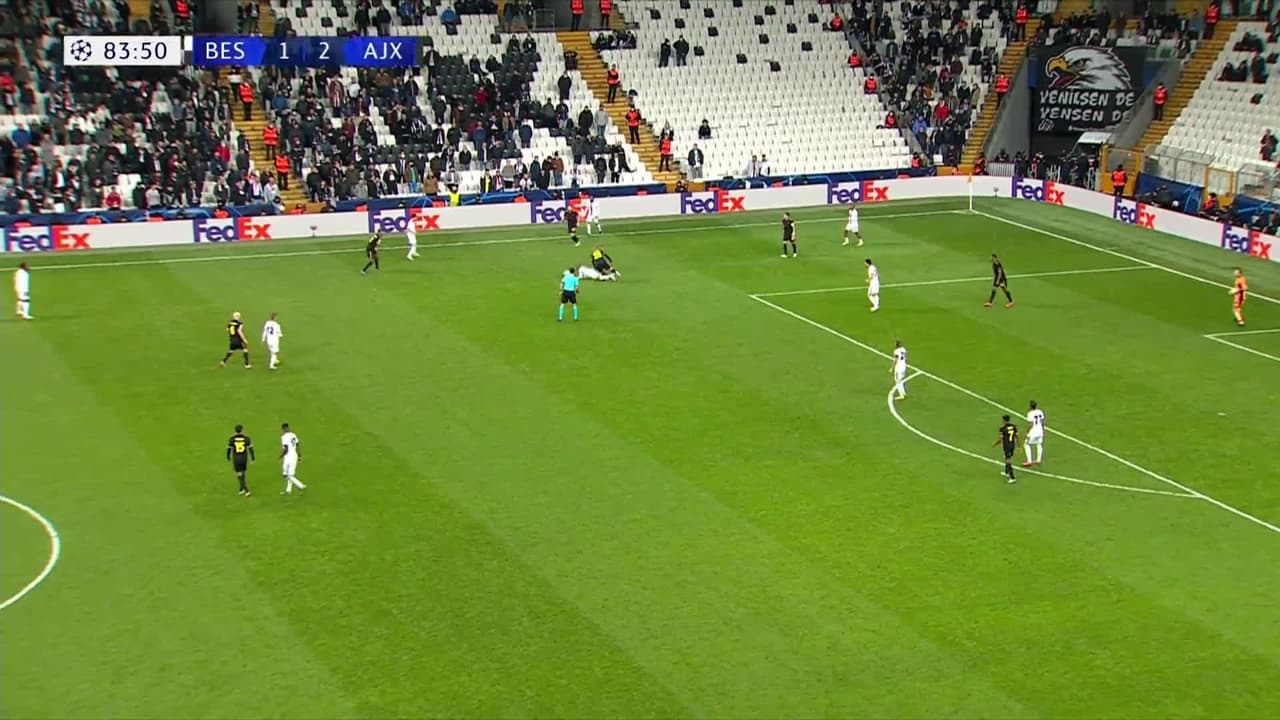 Tiro atajado raso al centro del arco. Lisandro Martínez (Ajax) disparo de cabeza desde el centro del área. Asistencia de Dusan Tadic con un centro al área.