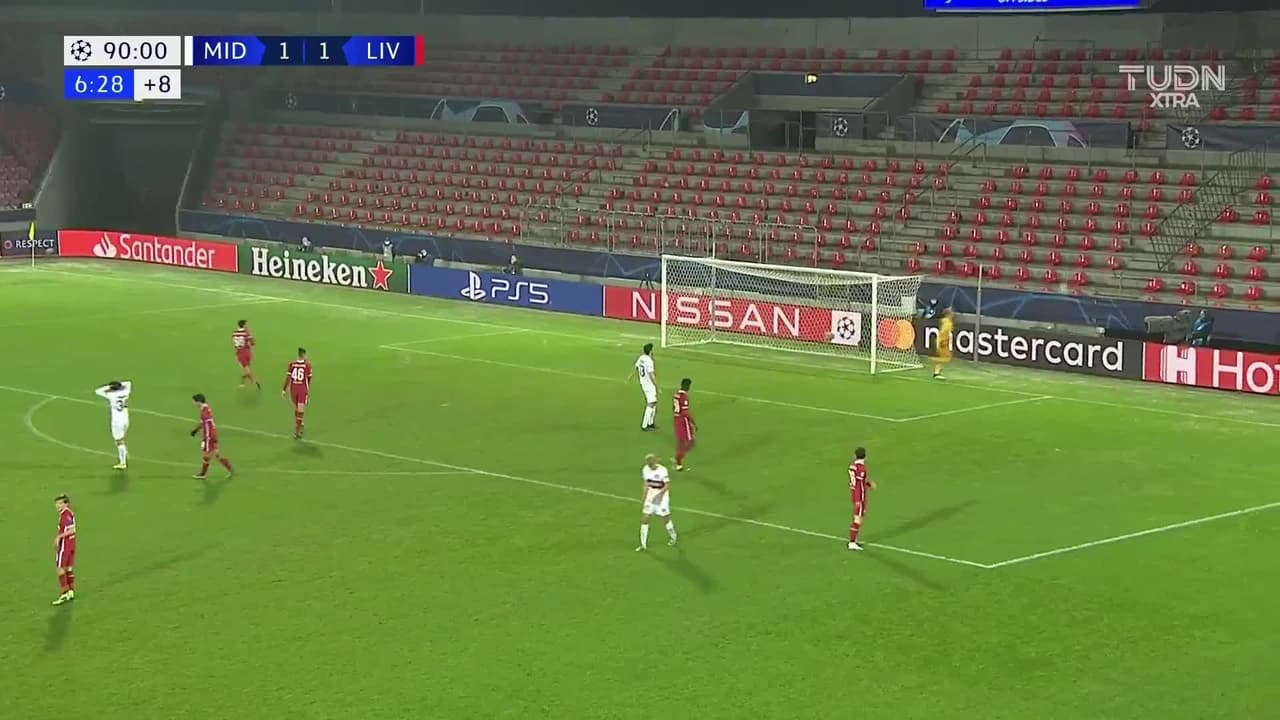 Tiro atajado. Luca Pfeiffer (FC Midtjylland) zurdazo desde el lado izquierdo dentro del área.