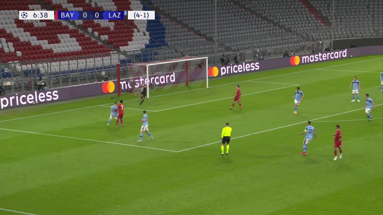 Tiro atajado. Lucas Hernández (FC Bayern München) zurdazo desde fuera del área.