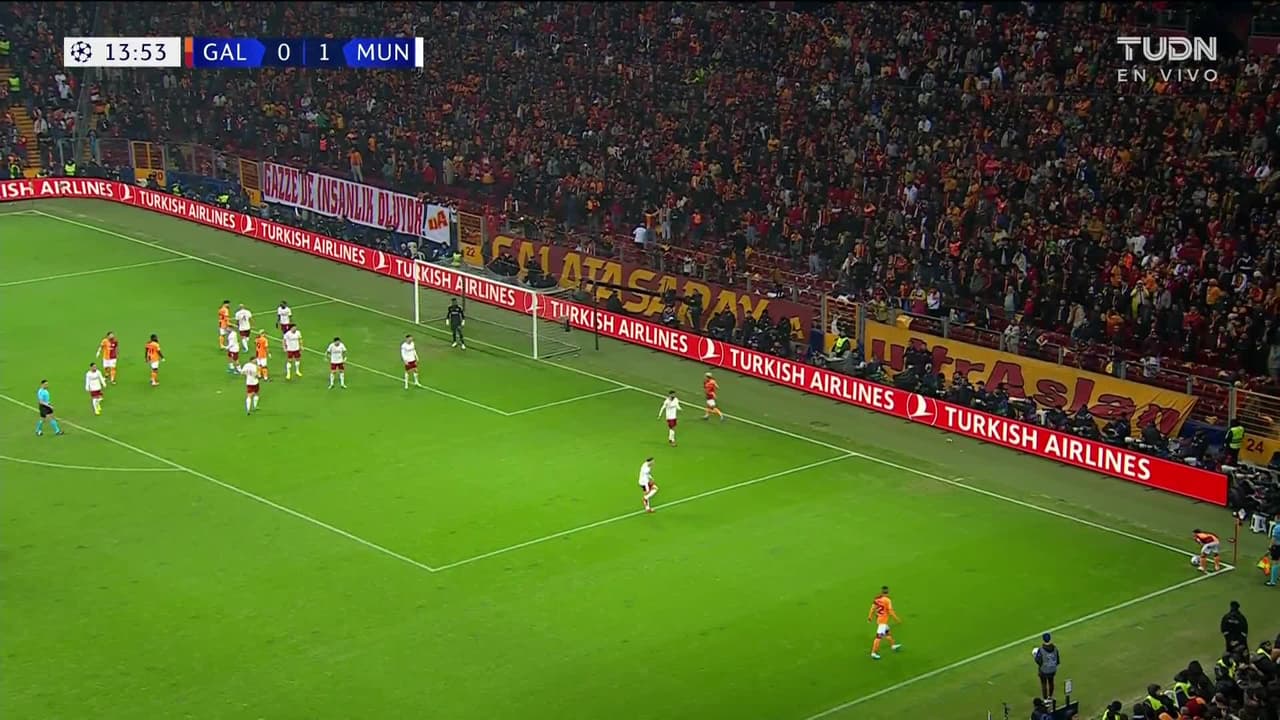 Tiro atajado junto al lado derecho de la portería. Lucas Torreira (Galatasaray) disparo de cabeza a quemarropa desde el lado derecho. Asistencia de Dries Mertens con un centro al área.