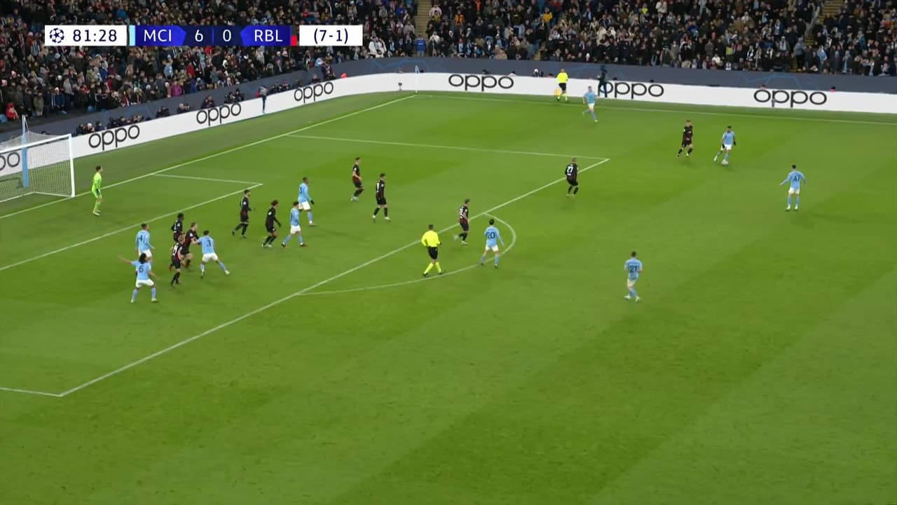 Tiro atajado por abajo a la izquierda. Manuel Akanji (Manchester City) disparo de cabeza desde el centro del área. Asistencia de Bernardo Silva con un centro al área.