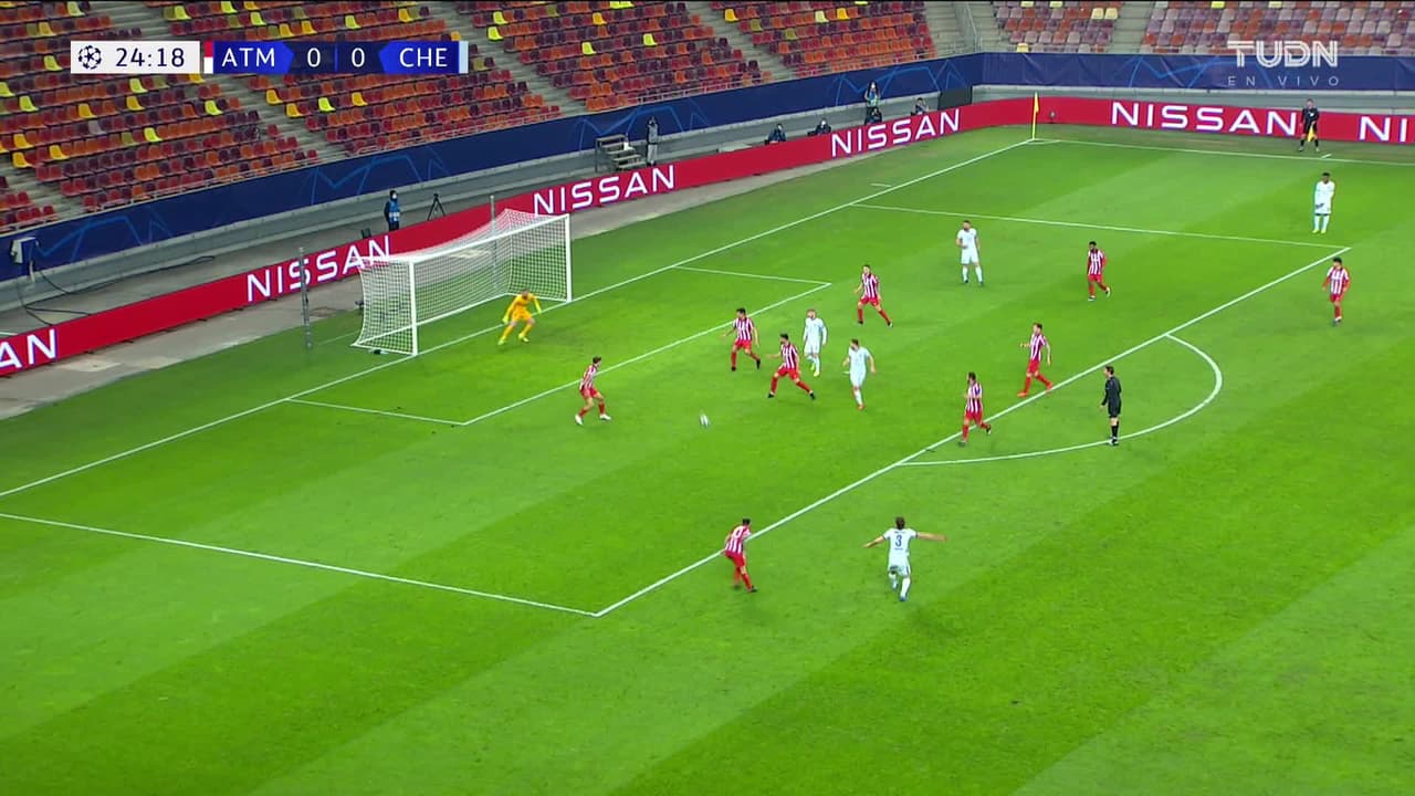 ¡TIRO ATAJADO! disparo por Marcos Alonso.