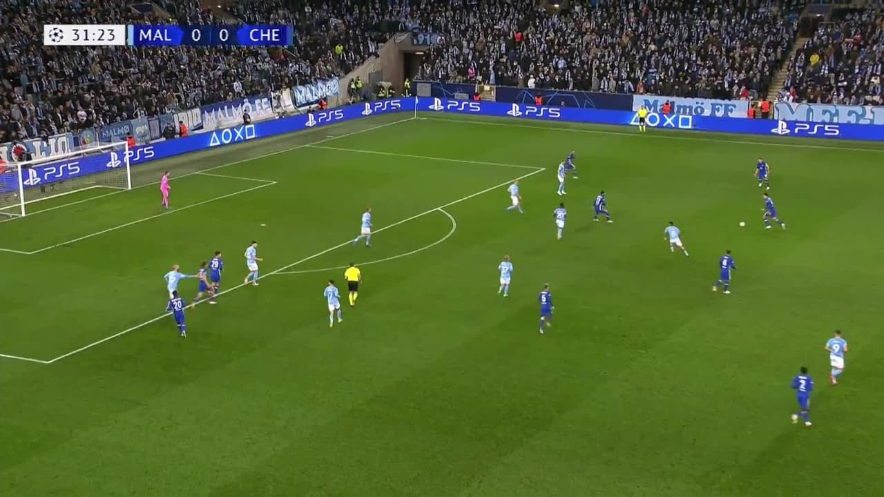 ¡TIRO ATAJADO! disparo por Marcos Alonso.