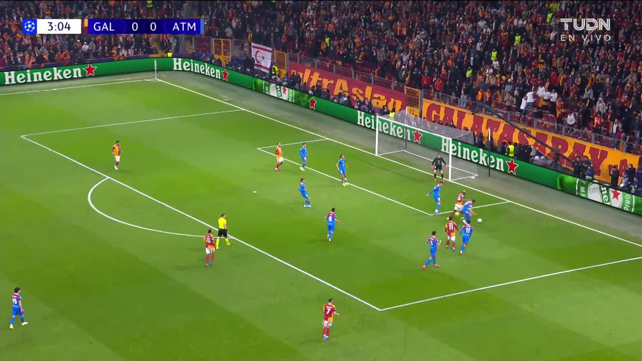 Tiro atajado. Mario Lemina (Galatasaray) Disparo con la derecha desde fuera del área.