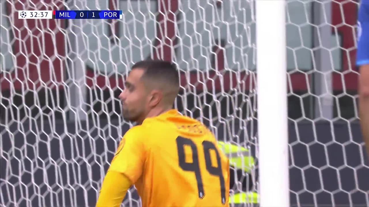 Tiro atajado raso al centro del arco. Marko Grujic (FC Porto) Disparo con la derecha desde el lado derecho dentro del área. Asistencia de Evanilson.