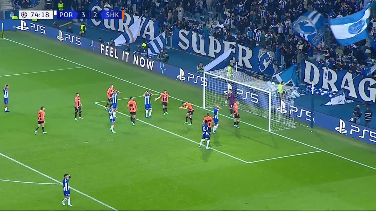 Tiro atajado Por arriba en el centro del arco. Mehdi Taremi (FC Porto) disparo de cabeza desde el centro del área. Asistencia de Stephen Eustáquio con un centro al área.