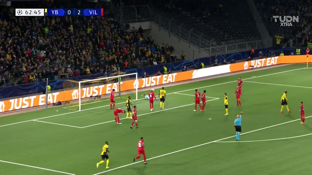 Tiro atajado. Mohamed Ali Camara (BSC Young Boys) disparo de cabeza desde el centro del área.