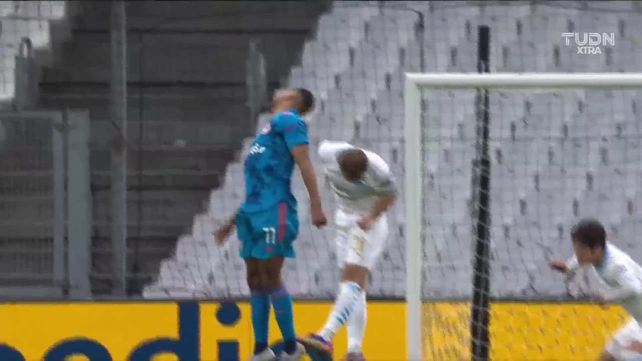 Tiro atajado por abajo a la izquierda. Morgan Sanson (Marseille) Disparo con la derecha desde el lado izquierdo dentro del área. Asistencia de Duje Caleta-Car pase largo.