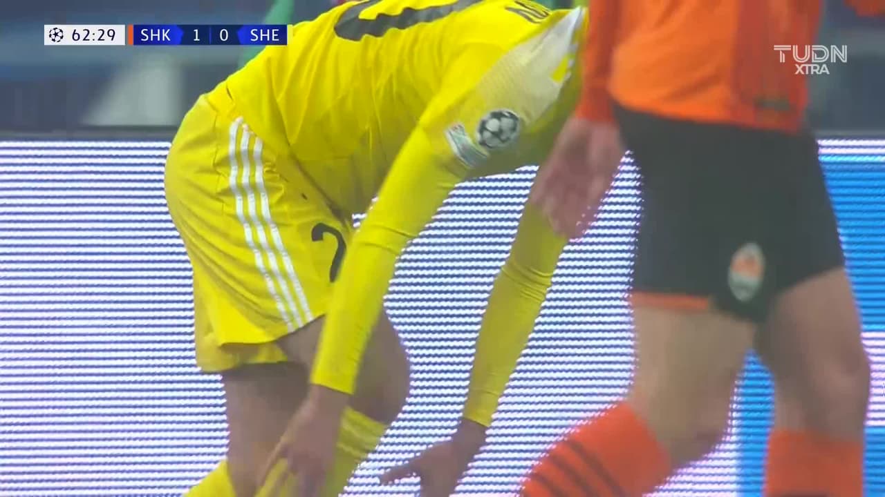 Tiro atajado Por arriba en el centro del arco. Mykhailo Mudryk (Shakhtar Donetsk) zurdazo desde el lado izquierdo dentro del área. Asistencia de Viktor Korniienko.