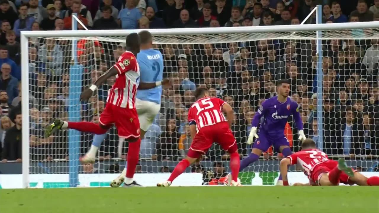 Tiro atajado junto al lado derecho de la portería. Nathan Aké (Manchester City) disparo de cabeza desde el centro del área. Asistencia de Julián Álvarez con un centro al área.
