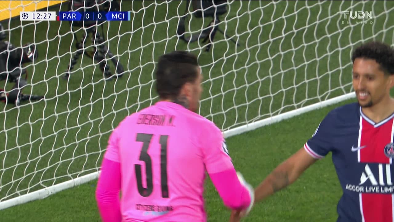 Tiro atajado Por arriba en el centro del arco. Neymar (Paris Saint-Germain) Disparo con la derecha desde el lado izquierdo dentro del área. Asistencia de Marco Verratti.