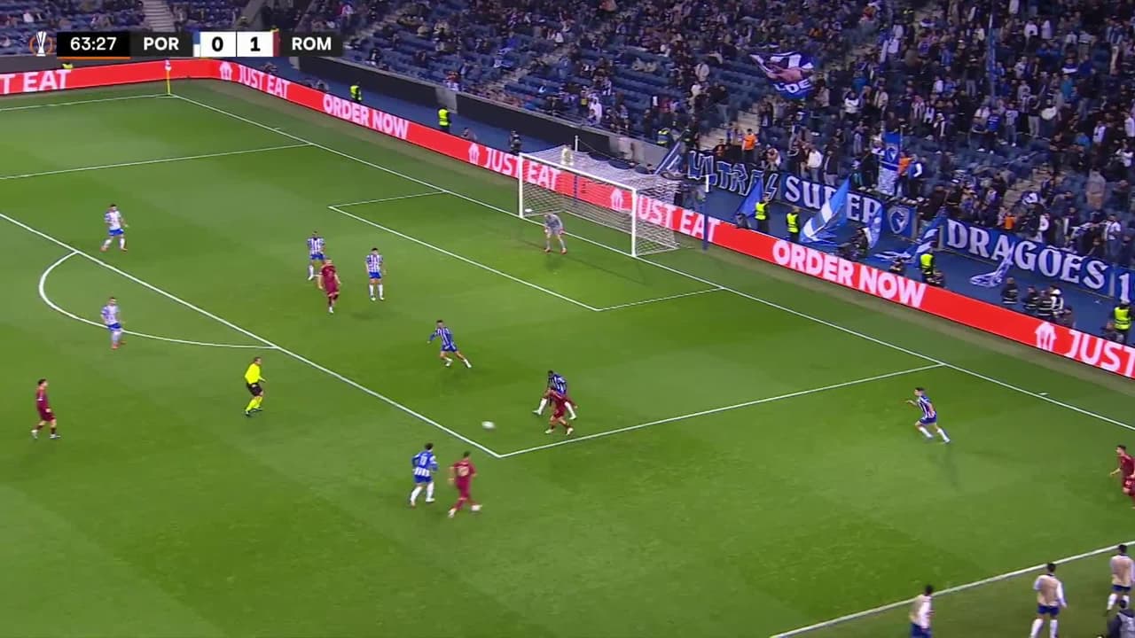 Tiro atajado. Niccolò Pisilli (AS Roma) Disparo con la derecha desde fuera del área.