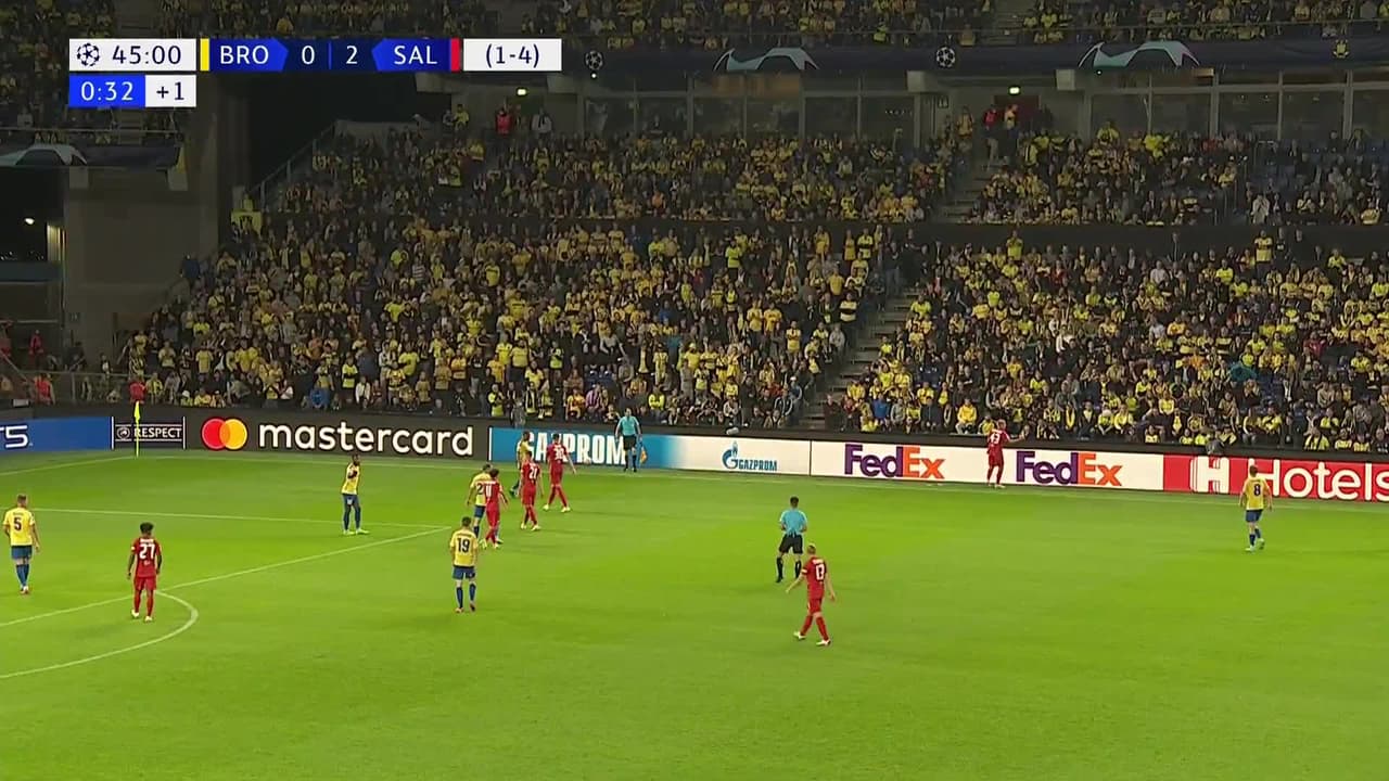 Tiro atajado raso al centro del arco. Nicolas Seiwald (FC Red Bull Salzburg) Disparo con la derecha desde el centro del área. Asistencia de Luka Sucic.