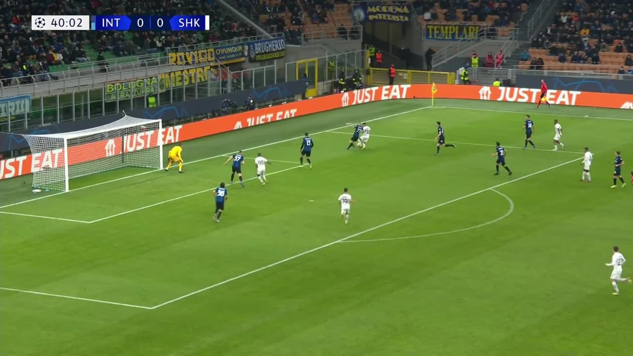 Tiro atajado. Pedrinho (Shakhtar Donetsk) zurdazo desde fuera del área.