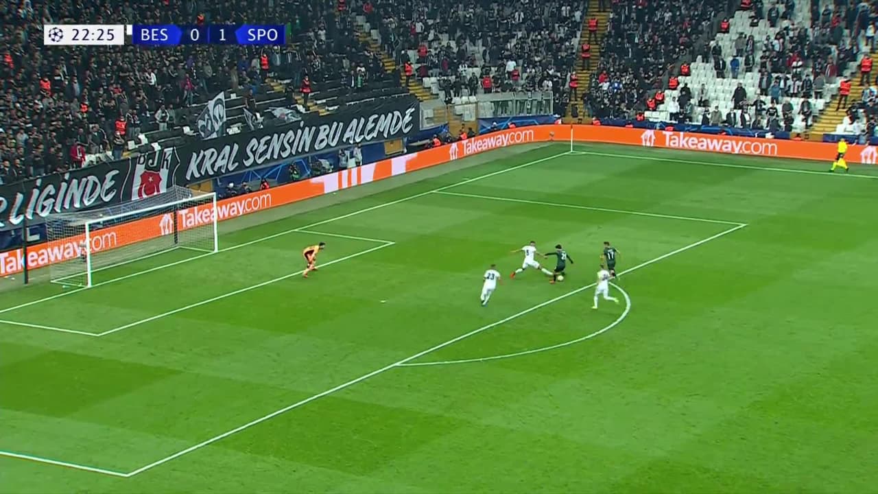 Tiro atajado. Pote (Sporting Lisbon) Disparo con la derecha desde el centro del área.