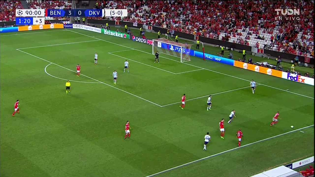 Tiro atajado junto al lado derecho de la portería. Petar Musa (Benfica) Disparo con la derecha desde el lado derecho dentro del área. Asistencia de Henrique Araújo.