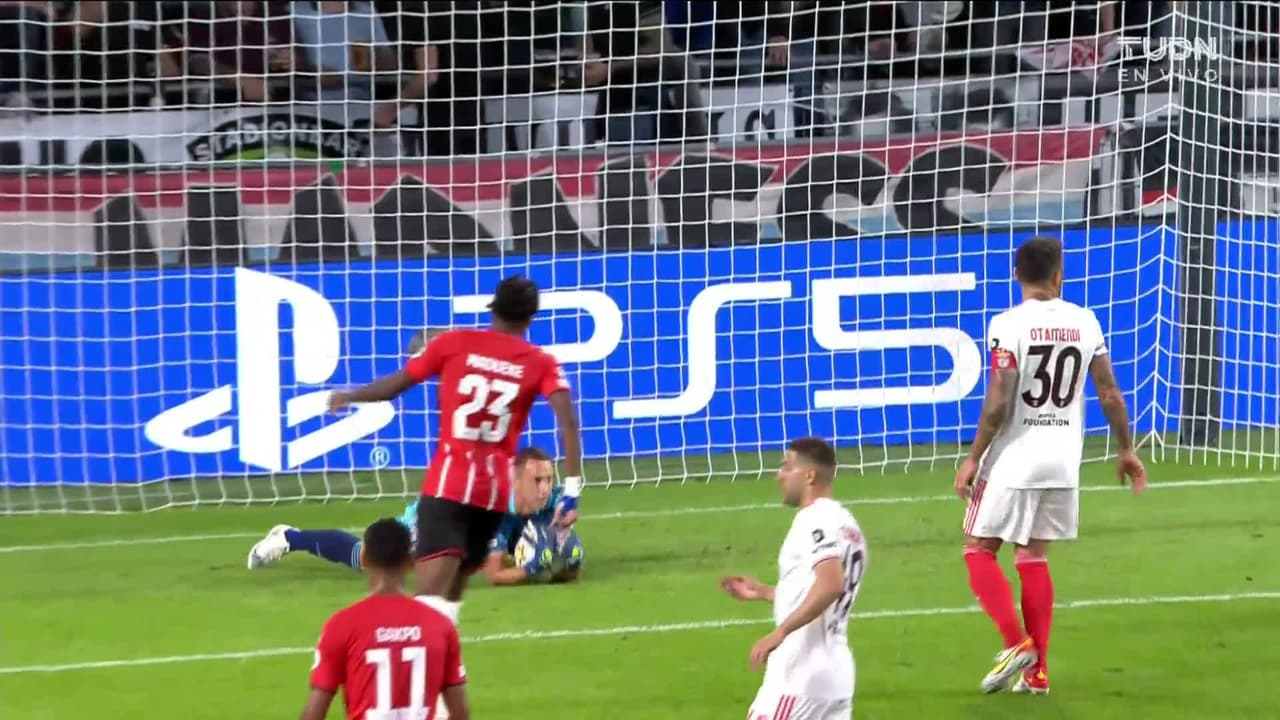 Tiro atajado raso al centro del arco. Philipp Max (PSV Eindhoven) zurdazo desde fuera del área. Asistencia de Cody Gakpo.