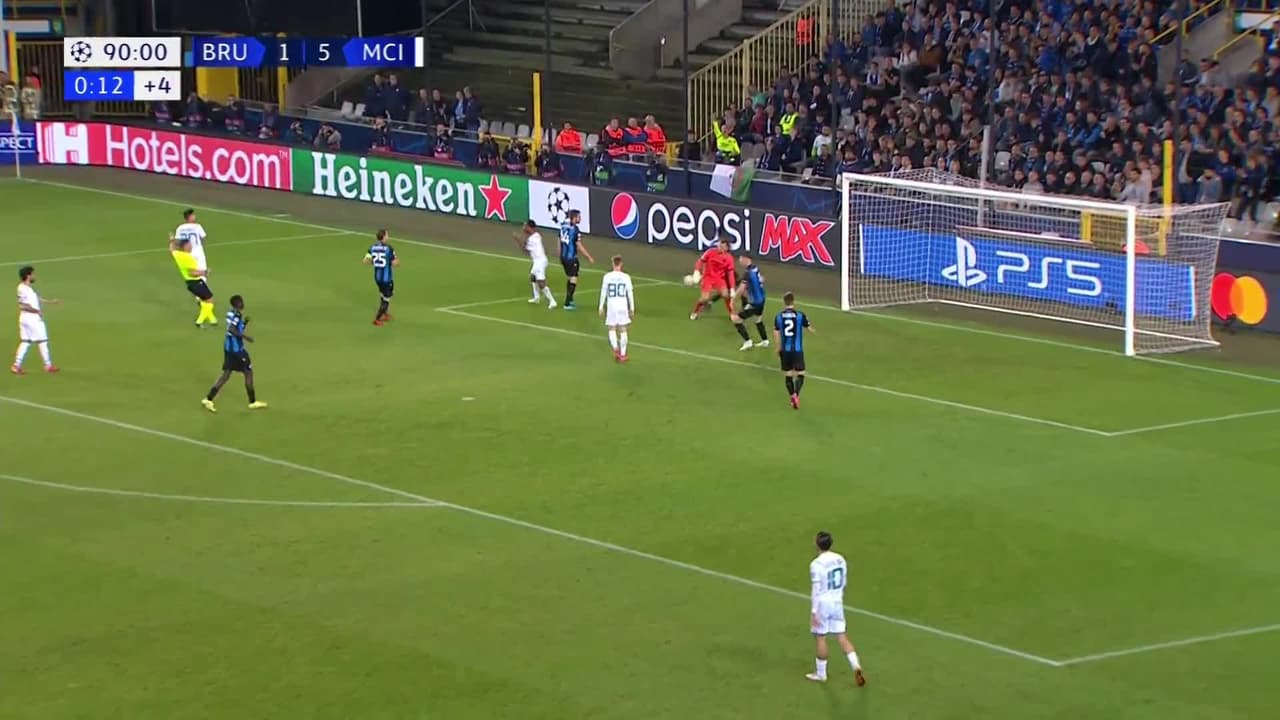 Tiro atajado por abajo a la izquierda. Raheem Sterling (Manchester City) zurdazo desde el centro del área.