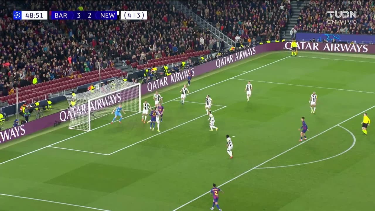 Gol Lamine Yamal de penal en Champions League vs. Newcastle United festejo