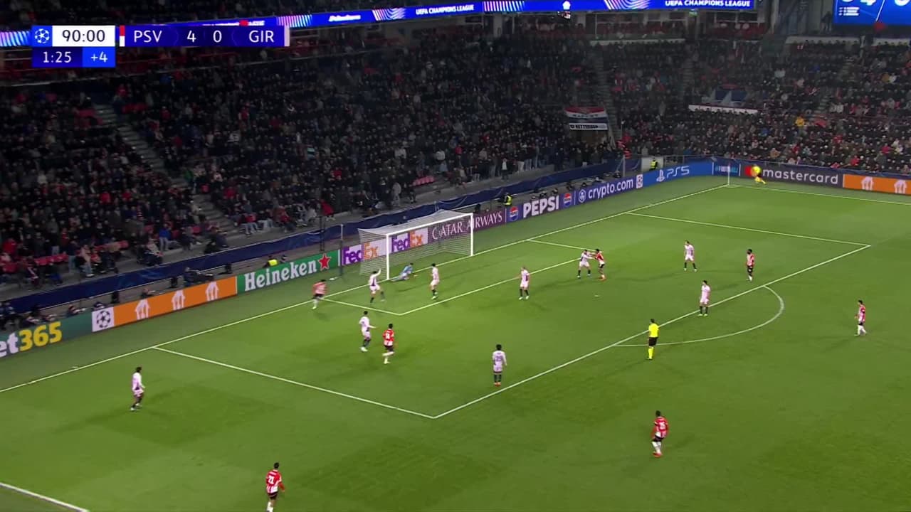 Tiro atajado. Ricardo Pepi (PSV Eindhoven) Disparo con la derecha a quemarropa desde el lado izquierdo.