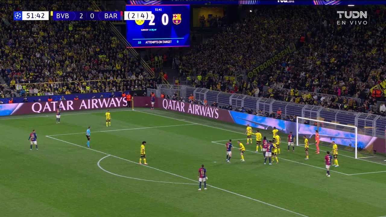 Tiro atajado Por arriba en el centro del arco. Ronald Araujo (FC Barcelona) disparo de cabeza desde el centro del área. Asistencia de Fermín López con un centro al área.
