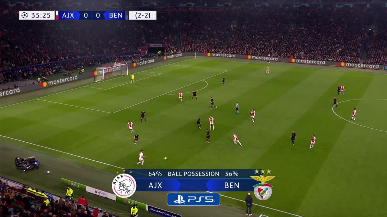 Tiro atajado Por arriba en el centro del arco. Ryan Gravenberch (Ajax) Disparo con la derecha desde fuera del área. Asistencia de Lisandro Martínez.