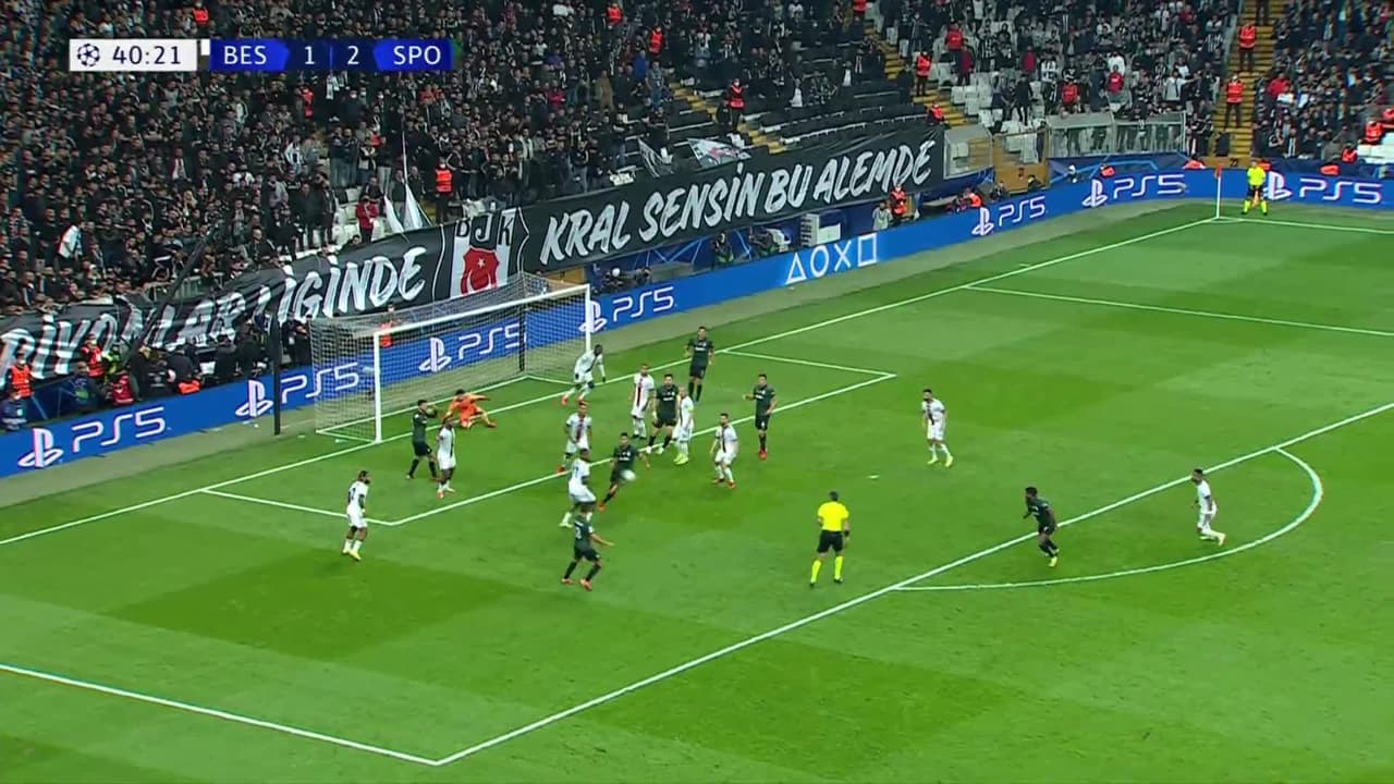 Tiro atajado Por arriba en el centro del arco. Sebastián Coates (Sporting Lisbon) disparo de cabeza desde el centro del área.